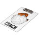 a prancheta prática e do divertimento imprimiu com um tigre que agacha-se em um voleibol. A parte dianteira da prancheta tem a palavra "treinador" e a parte traseira da prancheta tem do "o voleibol tigre" na parte traseira. Todas as palavras podem ser personalizadas para refletir nomes do jogador, números, ou nome da escola.