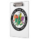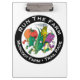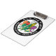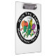 Uma prancheta plástica com funcionamento o logotipo da fazenda em um lado e logotipo do laço de Leatherman no outro lado.