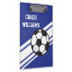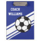 Listras diagonais brancas das características deste design do divertimento com uma bola de futebol. O fundo é azul marinho. Eu tenho este design disponível em uma variedade de cores. Se você não encontra o que você está procurando apenas a mensagem mim. Personalize a parte dianteira e a parte traseira com um nome, uma equipe, uma frase ou umas citações. Estas pranchetas são grandes para um jogador de futebol, treinador, professor da educação física, professor de gym, treinador da liga júnior, ou ostentam o atleta. Fazem a grandes apreciação ou presentes de época natalícia do professor.