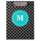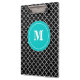 Mostre fora seu estilo em uma maneira do divertimento com esta prancheta personalizada moderna e na moda do quatrefoil do preto e da cerceta.