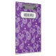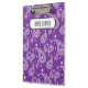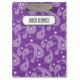 Prancheta roxa e branca bonito do impressão de paisley com uma área branca e preta da bandeira do vintage que você possa facilmente personalizar com suas nome ou iniciais.