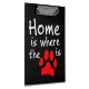 Uma peça com a citação "Casa é onde está o coração", esta área de transferência tem as palavras "Casa é onde está a [imagem impressa na pata]", com a imagem impressa na pata em vermelho, representando o "coração". O presente perfeito para amantes de estimação.