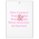 No texto cor-de-rosa lê-se: "No que se refere aos Direitos da Mulher e à Saúde da Mulher, as Mulheres devem ter a palavra final." O sinal "e" é vermelho, é colocado em segundo plano no texto cor-de-rosa e é alargado ao cobrir tanto dos "direitos" como da "saúde" do texto cor-de-rosa.