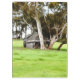 Perto de Lismore, em Victoria, Austrália, uma velha barraca de madeira que corre no meio de um campo verde, rodeado por chicletes altos e lentos. Para que foi usada a barraca? A grama vibrante contrasta com a estrutura rústica, criando uma cena serena e pacífica.