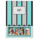 Ideia de presente de Área de Transferência dupla. Adicione iniciais, que também mudará automaticamente na parte traseira da área de transferência. Substitua as 4 fotos na parte frontal e outras 4 fotos na parte traseira. Cinzas, hortelã e preta, com listras.