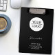 Adicione seu logotipo à área de transferência preta de promoção da empresa de texto personalizado. Adicione seu logotipo e personalize o texto, o nome da empresa, o endereço e as informações de contato. Promoção de negócios ou oferta para seus clientes e parceiros comerciais.