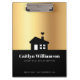 Esta prancheta personalizada de empresas imobiliárias de promocional é uma maneira terrivelmente na moda de se apresentar aos seus clientes. Um simples ícone gráfico preto da casa moderna e uma tipografia branca em negrito sobre uma banda preta sobrepõem um fundo de folha de ouro falso. Personalize com seu nome e sua empresa, além do número de telefone, site ou outra cópia. O tamanho de 9"x12,5" retém até 0,5" de papel com segurança. Faz uma declaração chic, profissional e elegante como uma promoção exclusiva e sem precedentes para seus clientes. Cartões de visitas correspondentes também estão disponíveis: https://www.zazzle.com/real_estate_broker_agent_modern_black_gold_house_business_card-256844850308907712 Basta digitar seu nome, nome comercial e todas as suas informações adicionais na seção "Personalizar este Modelo" e você pode personalizar facilmente esta área de transferência personalizada. Por favor, me mande mensagens com quaisquer perguntas ou solicitações.