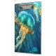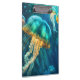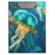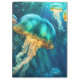 As águas-vivas azuis, verdes e douradas derivam através de águas oceânicas azuis nesta prancheta. Perfeito para quem ama o oceano e a vida marinha.