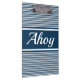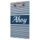 Design de texto Ahoy com decoração de listras brancas e azuis marinhos
