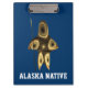 Uma imagem fractal em tons castanhos sugerindo um caçador Inuit altamente estilizado, vestindo roupas tradicionais de pele, segurando um arpão com cabeça de marfim. A leitura de texto "Alaska Native" também é exibida.