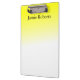 Se você gosta de cores brilhantes, você vai gostar dessa prancheta amarela que pode ser personalizada. Com um design de gradiente amarelo e branco, personalize seu nome. Peça o seu hoje! Arte original: © 2016, Rhonda Jones