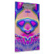 Este é um design original. A parte de trás e a parte frontal têm tons de rosa, azul e verde.