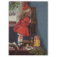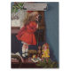 Esta bela imagem é de um antigo cartão de Natal, mostrando a uma menina fazer o telefone de Natal dela. Vintage e antiguidade.