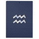 Um símbolo de cromo prateado como Aquarius Zodiac em um fundo impressão azul marinho. Um design moderno urbano para uma ideia personalizada de presente de aniversário de excelente. Designs de bordados estão disponíveis em uma seleção de opções populares de cor. Use o link "Perguntar a este Designer" para entrar em contato conosco com suas solicitações especiais de design ou para obter assistência com suas necessidades de personalização.