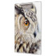Retrato pintado de uma águia-coruja minha bela arte impressa em uma prancheta. Pássaro atordoante de presa com o desejo de caçar no olho ou talvez registrar a observação de aves. Reproduzida pela minha pintura de aquarela original por Sarah Trett.