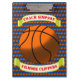 Uma bola de basquete e banners fazem esta prancheta divertida. presente de excelente para um treinador. Personalizável para que você possa adicionar seu próprio texto e alterar a cor de fundo. Faz um presente excelente!