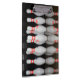 Uma área de transferência com foto de um rack de pinos de boliche em ambos os lados. Perfeito para a pessoa que atua como secretária de uma liga de boliche e mantém o controle das estatísticas.