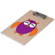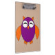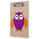 Esta prancheta espetacular apresenta uma coruja fofa com os olhos fechados como se estivesse dormindo e garras bonitinhas. Seu corpo é roxo e suas asas, ouvidos e garras e bico são laranja. Esta coruja fofa é tão adorável que os adultos a amarão tanto quanto as crianças.