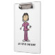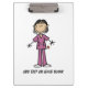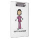 Uma prancheta de excelente para enfermeiras, apresenta uma enfermeira asiática num uniforme roxo com estetoscópio e uma área que você pode personalizar ou deixar vazio.