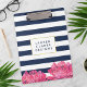 Esta área de transferência apresenta um fundo azul marinho e branco de faixa, borda falsa dourada e uma pénia rosa bonito em aquarelas moles. Coordena-se com nossos suprimentos de Marinho Stripe & Pink Peony, produtos de papel e acessórios. Personalize com um monograma, nome ou texto de sua escolha!