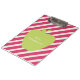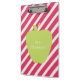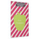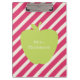 Uma área de transferência para professores com um padrão listrado rosa. Frente apresenta uma ilustração de maçã verde. Personalize com seu nome em maçã.