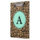 Uma impressão de leopardo decora esta prancheta de na moda. Personalize esta área de transferência alterando a letra do monograma. Use esta prancheta para casa, escola, escritório, etc... A design é da arte original.