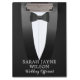 Todos os melhores Oficiais de Casamento têm uso para uma prancheta. Adicione seu nome a este. Apresentando um smoking preto e um texto que você pode personalizar, que é o mesmo na frente e atrás.