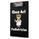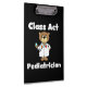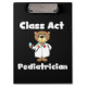 Um pediatra bonitinho na prancheta de design que qualquer pediatra certamente ama, apresenta um médico de ursos de pelúcia com casaco de laboratório e estetoscópio e texto branco que lê Pediatra da Classe Act em um fundo preto.