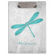 Junte notas e lembretes em uma superfície segura com uma Área de Transferência Personalizada da Dragonfly Teal. O design da área de transferência apresenta uma libélula colorida, uma vinha branca e macia contra um fundo damasco de cinza claro com uma área para personalizar com seu nome. Itens de presentes adicionais disponíveis com este design, bem como uma variedade de cores.