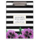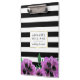 A área de transferência floral moderna apresenta listras negras e brancas clássicas com uma flor pansível de cor d'água púrpura e borda falsa de ouro. Personalize com um monograma, nome ou texto de sua escolha!