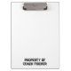 Ninguém pode fugir com a prancheta deste treinador. Personalizado com o nome do treinador na frente e atrás.