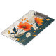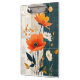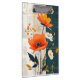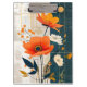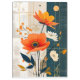 As papoilas pintadas em laranja combinam-se com flores brancas e bagas de laranja num fundo mediático misto, em cinzas azuis escuras e bronzeado com amêndoa. Design muito bonito, moderno e abstrato.