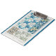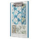 Uma elegante arte nouveau vintage de arte têxtil por maurice verneuil com lírios e iretos. Em cores de azul, cinza, amarelo e branco.