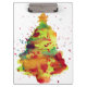 Árvore natalina de aquarela, 2 lados, área de transferência personalizada. Uma Árvore de Natal de aquarela com todos os tipos de cores, uma estrela de ouro no topo e gotas fantásticas de tinta com padrões. A frente da prancheta mostra a totalidade da árvore de Natal e a parte de trás da prancheta tem o nome de sua escolha e a data, mas isso é completamente personalizável para ler o que você quiser.