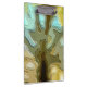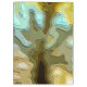 Um desenho abstrato de uma árvore na floresta contra um céu azul.