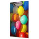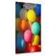 Um aglomerado de balões brilhantes e coloridos de brinquedos contra o fundo da floresta escura. Fotografia texturizada.