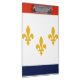 Área de transferência com pavilhão da cidade de Nova Orleans, Louisiana; bandeira branca com listras vermelhas e azuis e três ouros de fleur-de-lys