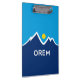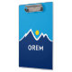Área de transferência com um design com a bandeira de Orem, Utah. Uma bandeira azul, branca e amarela com picos de montanha e o sol no centro