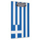 Esta design apresenta a bandeira nacional da Grécia (Publicidade para o período de estudos "3000-2010"), oficialmente a República Helênica, país situado no Sudeste da Europa. A capital e a maior cidade de Grécias é Atenas, enquanto a segunda maior cidade é Salónica. A grécia partilha fronteiras terrestres com a Albânia a noroeste, a Macedônia do Norte e a Bulgária a norte, e a Turquia a nordeste. O país tem muitas ilhas, das quais 227 são habitadas. A grécia é constituída por nove regiões geográficas tradicionais: Macedônia, Grécia Central, Peloponeso, Tessalia, Epiro, Ilhas do Egeu (incluindo o Dodecaneso e as Cíclades), Trácia, Creta e Ilhas Jônicas.