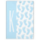Monograma branco bonito, personalizável, no padrão chic Baby Blue, Boy Baby Feet. design com grande, personalizado, monograma personalizado vertical e legal. presente de tendências de excelente para crianças, adolescentes, adolescentes ou adultos!