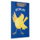 Um pássaro canário giro feliz está cantando uma canção no estilo de desenho animado divertido.