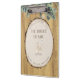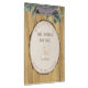 A madeira cortesia procura uma prancheta de design de cabine para hóspedes, acampamento de verão ou quaisquer atividades de cabine de férias. Fatia de madeira com pequena cabana, um spray de pinheiros pintados e palavras de boas-vindas ou lema especial nas áreas de texto personalizáveis.
