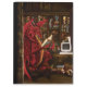 Dragão vermelho sentado no computador, lendo um livro. Por trás dele há equipamento de podcasting e um computador em sua mesa com todos os seus tesouros à sua volta.
