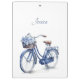 pintura aquosa de uma bicicleta com um cheio de flores em cor azul delft