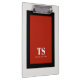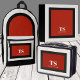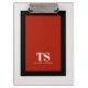 Este design de área de transferência distinta tem elementos design clássicos de um quadro retangular de bloco de cor em negrito e contraste em vermelho vívido e preto sobre um fundo esbranquiçado. Um modelo de texto é incluído com as iniciais do monograma e o nome para personalizar como quiser. Este olhar é na moda e sofisticado, mas simples e moderno com apelo neutro em termos de gênero. Faz uma escolha excelente para voltar à escola, à casa ou ao escritório.