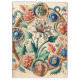 O produto retrata um belamente intrincado e decorativo design floral que combina elementos de ilustrações botânicas do estilo medieval e renascentista. A composição apresenta um conjunto de flores coloridas, incluindo uma flor branca central com pétalas detalhadas, rodeada por padrões circulares contendo flores azuis, vermelhas e cor-de-rosa. Essas flores estão entrelaçadas com videiras e folhas girando em verdes vibrantes, azuis e tons de terra, dando ao design uma aparência dinâmica e harmoniosa. A design apresenta um estilo artístico que lembra manuscritos iluminados ou filigranas de ornamentado, com uma elegante estética de safra. O fundo é suavemente texturizado, aumentando a sensação tradicional do trabalho de arte. Os detalhes, como borboletas pequenas e caramujos delicados, somam à qualidade caprichosa e encantadora da peça.