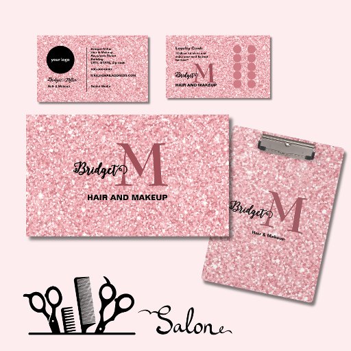Pranchetas Blush Pink glitter Monogram hair and makeup