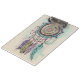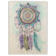 Uma design estética de caçador de sonhos, pintada à mão, moderna e tribal, apresentando uma elegante flor desenhada à mão, penas e flores. O trabalho de arte é pintado com efeitos de aspersão de aquarelas, dando-lhe uma aparência de artesanato única. Este asteca e o tradicional design de caçador de sonhos é bonito, sonhador e mágico, fazer perfeito para ocasiões e celebrações especiais.