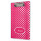 Área de transferência de padrão de bolinhas rosa claro e brilhante moderno. Personalize esta área de transferência com o seu nome e a sua família inicial na frente e na parte traseira da área de transferência. Lê-se atualmente Angela K. Presente personalizado ideal para meninas e mulheres que estudam na escola, na faculdade ou na universidade que querem que uma prancheta com nome específico use para fazer anotações. Desenhada por Sarah Trett.
