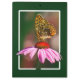 Este item mostra a imagem de uma borboleta ouro sobre uma flor roxa de coneflower.